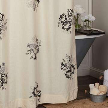Piper Classics Lydia Black Floral Shower Curtain, 72" x 72", Vintage Farmhouse Boho Style Flower Print Bathroom Curtain, Cream & Black Bath Accent