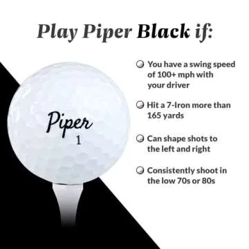 Show more Introducing the Piper Black Golf Balls, the ultimate choice for avid golfers looking to elevate their game. Designed specifically for players with a handicap range of 0-12, these balls are perfect for those who can shape their shots and are comfortable shooting in the 70s or 80s. With a remarkable 3-piece construction, the Piper Black delivers boosted distance, allowing players to maximize their potential on the course.