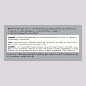 Piping Rock Hyaluronic Acid Serum for Face | 1 fl oz | Moisturizer for Skin and Body | Cruelty Free