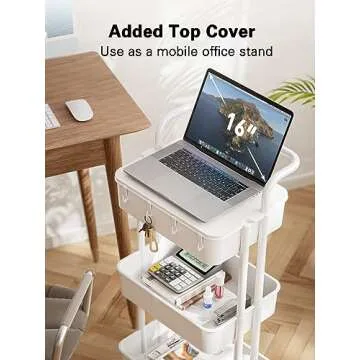 Pipishell 3 Tier Rolling Cart with Table Top for Home Organization and Storage Solutions