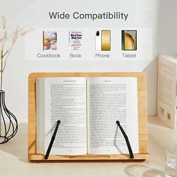 Pipishell Bamboo Book Stand, Cookbook Stands Reading Book Holder with 5 Adjustable Height, Foldable Wooden Cookbook Holder for Textbook, Receipe, Music Books, Tablet