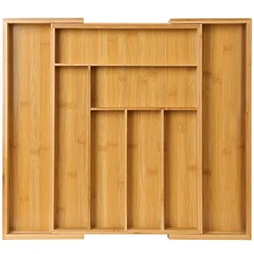 Pipishell Bamboo Drawer Organizer - Expandable, Adjustable Cutlery Tray