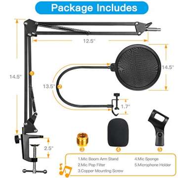 Pipishell Microphone Stand - Versatile Mic Stand with Pop Filter & Holder for Yeti and Other Microphones
