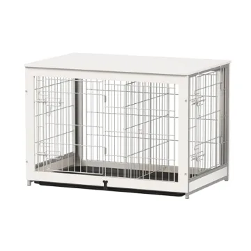 Show more Introducing the **Piskyet Wooden Dog Crate Furniture**—a perfect blend of style and functionality designed for your beloved pets. This elegant dog crate doubles as an end table, fitting seamlessly into your home decor without compromising your pets' comfort. Crafted from high-quality MDF and steel, this crate is built to withstand the test of time, accommodating dogs weighing up to 60 pounds. The dual purpose functionality and appealing design make it not only a secure haven for your puppy but also a stylish addition to your living space.