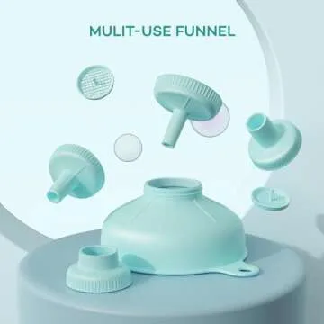 Pisol Wide Mouth Versatile Funnel, Canning Funnels for Kitchen Use, Food Grade Plastic Cooking Funnel Set with 4 Size Spouts and 2 Strainers for Filling Different Bottles and Bags, Teal