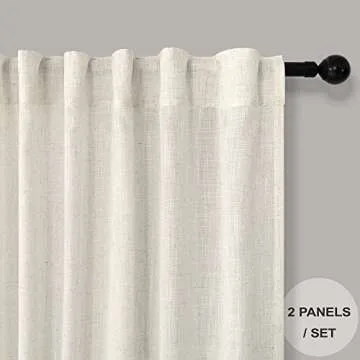 Pitalk 90 Inch Curtains 2 Pc Cream Ivory Curtain Panels 42 In Wide Back Tab Loop Pocket Energy Efficient Sheer Linen Drape for Dining Room Living Farm Country House Villa Home Office Study W 42 x L 90