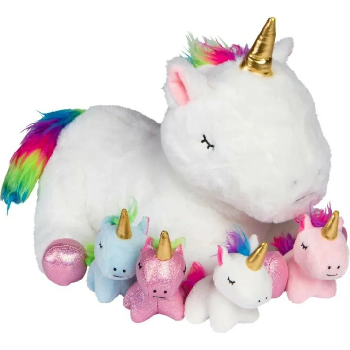 The plush mommy unicorn and her baby unicorns are made from ultra-soft, high-quality materials.