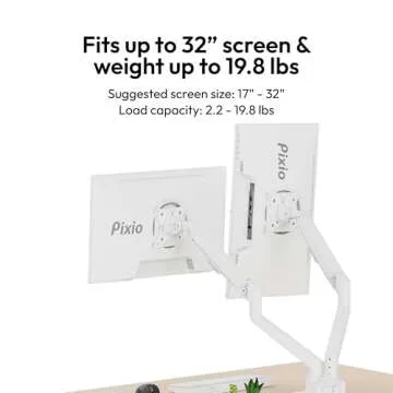 Pixio PS1D Wave White Dual Monitor Arm Stand for Two 32-Inch Monitors