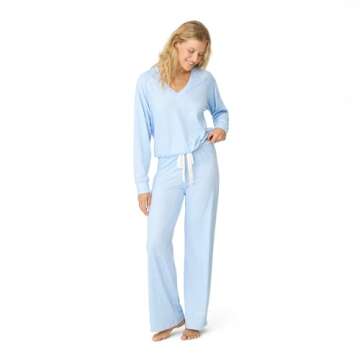 PJ Salvage Women's [Amazon Exclusive] Cloud Jersey Open-Bottom Pajama 2-Piece PJ Set, Ice Blue Dots, Medium