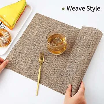 Show moreTransform your dining experience with the PABUSIOR Placemat for Dining Table Set of 6. Crafted from premium materials, this set is designed to offer both durability and elegance, making it a fantastic addition to any kitchen or dining area. The beautiful dark beige color effortlessly complements a variety of decors, while the easy-to-clean surface ensures that your table remains spotless after every meal. Designed for families with children, these placemats are resilient against spills and stains, ensuring they withstand daily use while maintaining their stunning appearance. Whether you're hosting a formal dinner or enjoying a cozy family meal, this placemat set is the ideal choice.