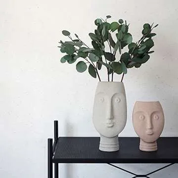 Show more Introducing the PLAFUETO Indoor Outdoor Head Planter Pot, a stunning ceramic sculpture that merges the beauty of classical art with functional design. Crafted from high-quality clay, this decorative planter showcases a faux distressed finish that effortlessly enhances its antique effect. Standing tall at a total height of 33.5cm (13.2 inches), and featuring an upper diameter of 12.5cm (4.9 inches) and a lower diameter of 16cm (6.3 inches), this head planter is perfect for those who wish to elevate their home or garden decor.
