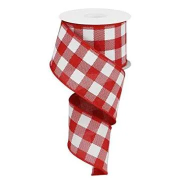 Plaid Check Wired Edge Ribbon - 10 Yards (Red, White, 2.5 Inches)