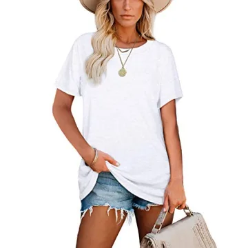 Plain T Shirts for Womens Crewneck Summer Tops Short Sleeve White Tees Shirts Casual L
