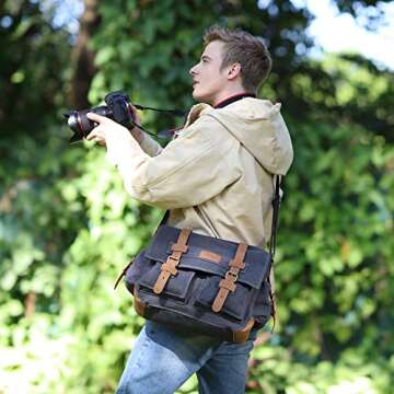 Plambag Lightweight DSLR Canvas Camera Bag, SLR Shockproof Camera Case, Messenger Shoulder Crossbody Bag for Men(Dark Grey)