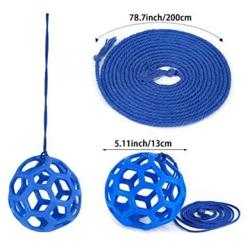 Show more Introducing the PLAMYWJ 2Pcs Horse Feeding Toys – the ultimate boredom buster designed for our equine friends! Specifically crafted for stable and paddock use, these vibrant blue horse treat balls are perfect for keeping your horses entertained while they eat. Crafted from soft and elastic materials, the feeder balls allow horses to naturally forage while promoting healthy exercise. With a diameter of 5.1 inches, they are perfectly sized for all breeds! Hang them up in the stable, and watch as your horses engage with them, shaking and nudging the balls to receive their favorite hay treats. This enriching experience not only boosts their physical activity but also keeps them mentally stimulated, addressing the common issues of boredom and stress in stabled horses.