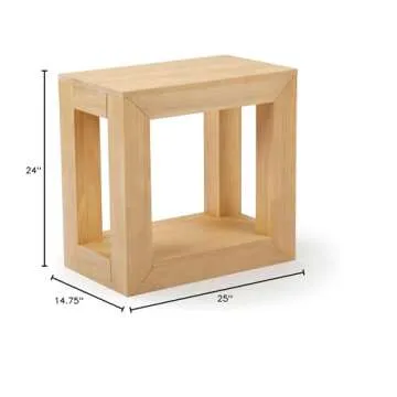 Plank+Beam Modern Rectangular Side Table with Shelf, 25", Solid Wood Narrow End Table for Living Room with Storage, Compact Bedside Table for Small Spaces, Blonde Wirebrush