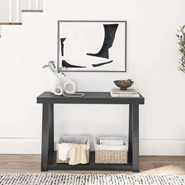 Plank+Beam Solid Wood Console Table with Storage, 46.25 Inch, Sofa Table with Shelf, Narrow Entryway Table for Hallway, Behind The Couch, Living Room, Foyer, Easy Assembly, Black