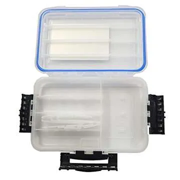 Show moreDiscover the ultimate solution for your organization needs with the Plano 3640 Waterproof Stowaway Case, a superior storage option designed to keep your essential items protected and neatly organized. Made in the USA and crafted with a commitment to quality, this storage box features a robust Dri-Loc O-ring seal that provides a reliable waterproof barrier, ensuring your belongings stay dry and intact during any adventure. With its sturdy build and three cam action latches, you can rest assured that your items are securely fastened and protected from the elements. The highlight of this case is its customizable design, featuring 5-20 adjustable compartments which allow you to tailor the interior layout according to your specific needs—perfect for fishing tackle, craft supplies, or snacks during your outings.