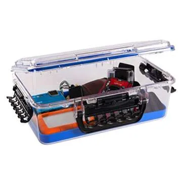 With features like three heavy-duty cam-action latches, you can trust that this container will securely hold whatever you place inside, while the interior slip-resistant rubber pads help stabilize fragile items. Its clear design with a vibrant blue base allows for easy identification of contents, and it perfectly fits into Plano tackle bags for added convenience. The dimensions of 14"L x 9"W x 5"H provide ample storage space, making it versatile for various outdoor needs.