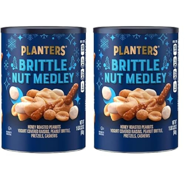 Show more Introducing the delightful PLANTERS Winter Edition Brittle Nut Medley, a perfect treat for all nut lovers and snack enthusiasts. This limited-edition canister holds 19.25 oz of a uniquely crafted winter mix that includes honey roasted peanuts, yogurt-covered raisins, crunchy peanut brittle, pretzels, and cashews, all expertly combined to create a symphony of flavors. Each element in this medley contributes to a delectable blend of sweetness and nuttiness with just the right hint of salt, making it an irresistible snacking experience. The high-grade nuts and thoughtful balance in this mix ensure that you won't find an overload of peanuts, distinguishing it from average nut assortments. What sets this product apart is not just its taste but also its versatility; it’s great for parties, casual gatherings, or even as a comforting treat on a cozy winter evening.