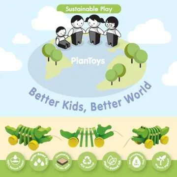 PlanToys Dancing Alligator Push & Pull Toy - Sustainably Made from Rubberwood with 3 Organic-Pigment Color Options and Makes Click-Clack Sounds and Dancing Movements when Pulled (Natural)