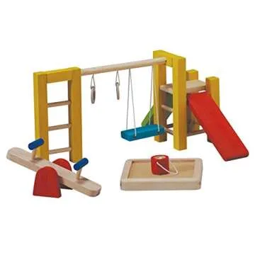 PlanToys Wooden Dollhouse Playground Equipment (7153) | Sustainably Made from Rubberwood and Non-Toxic Paints and Dyes
