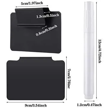 Show more Transform your home into a sanctuary of organization with our premium Plastic Clip-on Removable Labels. This incredible package includes 8 durable black basket bin labels and 1 white chalk marker, providing everything you need to elevate your storage system. Measuring 9 x 6.35 cm, these labels are the perfect size for baskets, bins, and drawers, ensuring that your belongings are clearly labeled and easily identifiable.