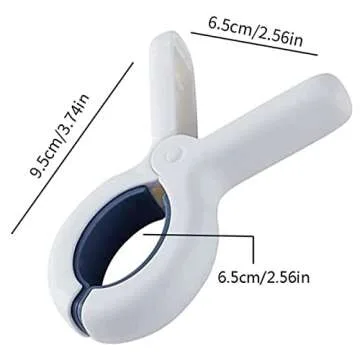 Show more Introducing the ultimate solution for all your holding and securing needs: these premium clips are expertly designed to provide a strong holding power that firmly grips beach towels, clothes, blankets, toys, and more. No more worries about gusty winds ruining your outdoor relaxation; our clips ensure everything stays perfectly in place. With a generous size of 3.74 inches long and 2.56 inches wide, boasting a maximum opening of 1.7 inches, they cater to a variety of items, making them indispensable in any household.