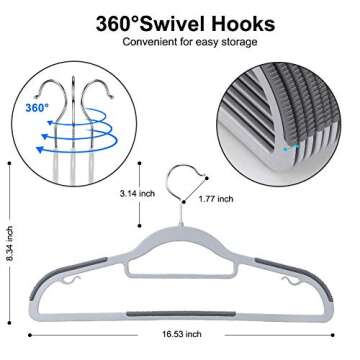 The strength of these hangers is impressive; they can hold up to 11 lbs each, making them ideal for everything from delicate blouses to heavy winter coats. Experience the convenience of 360° swivel hooks allowing you to access your clothing from any angle with ease. Each hanger also features two small hooks on the sides for additional accessories like ties or scarves, making dressing easier than ever!