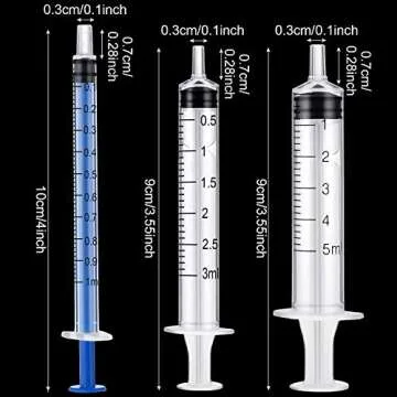 Plastic Syringe with Measurement and Caps, No Needle Measuring Syringe for Feeding, Watering, Refilling (60, 1 ml, 3 ml, 5 ml)