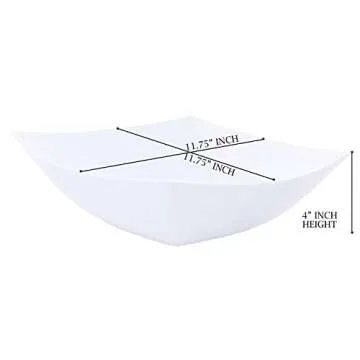 Show moreIntroducing the PLASTICPRO Disposable 128 Ounce Square Serving Bowls, your new best friend for hosting all types of gatherings! This set of four elegant square bowls is designed to meet your serving needs while ensuring you enjoy both style and practicality. Ideal for salads, snacks, or party delicacies, these bowls are perfect for everything from large family dinners to casual picnics. Crafted from durable BPA-free plastic, they boast a chic design that effortlessly elevates any occasion, making them the go-to choice for those who value aesthetics without compromising on functionality. With a generous capacity of 128 ounces, these bowls are versatile enough for heavy dips, fruit salads, or even as a statement dish for your signature recipes.