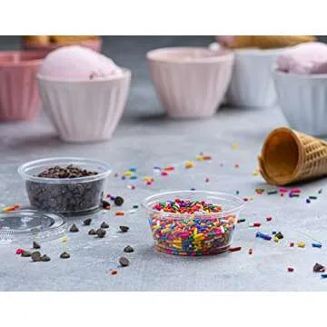 Plastimade Clear Disposable Plastic Portion Cups With Lids (200 Sets - 3.25 Oz) - Disposable Condiment Cups, Sauce/Dip/Dressing Cups, Souffle Cups & Jello Shot Cups With Lids | Grea