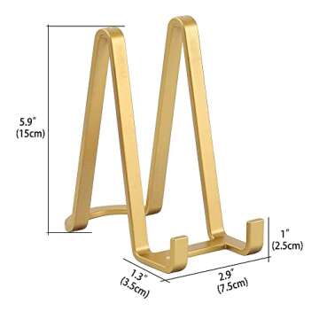 The versatility of our stands is truly remarkable. They can securely hold items ranging from 8 8" to 14" canvas paintings, making them perfect for exhibitions, special events, or everyday decor. Unlike traditional clear plastic stands, our muted gold plating blends seamlessly into any setting, allowing your art to take center stage without distraction. With a flat design, they provide a more stable base, ensuring your displayed items remain safe and upright.