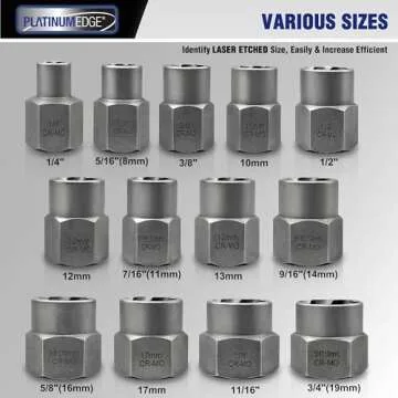 PLATINUMEDGE 13 Pieces Impact Bolt & Nut Remover Set, Stripped Bolt Extractor Set, Cr-Mo Extraction Tool Set with Solid Storage Case, Easy Out Rusted Rounded Damaged Nuts and Bolts