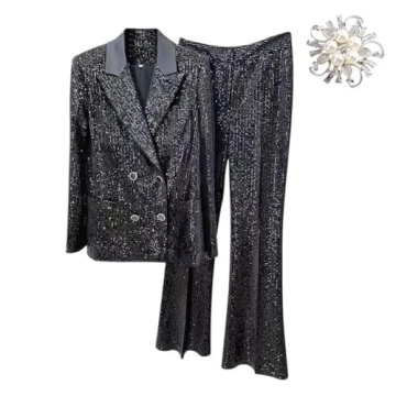 Elevate your wardrobe with the Party-Ready Platlogy Women's Sequin Blazer Pant Suit Set, meticulously designed to ensure you steal the spotlight at any event. Crafted from luxurious, high-quality fabric, this stunning two-piece outfit features an eye-catching sequin design, perfectly tailored to enhance your glam quotient. The ensemble includes a chic blazer with a sophisticated patchwork notched lapel and contemporary flared pants, creating an elegant silhouette that is bound to draw compliments....