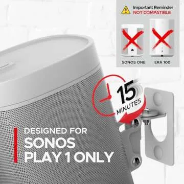 Show more If you're looking to enhance your home audio experience while giving your SONOS PLAY:1 speakers a stylish and functional setup, look no further than this innovative wall mount by SOUNDBASS. Designed exclusively for the older SONOS PLAY:1 model (please note: NOT FOR SONOS ONE OR ONE SL), this wall mount combines an ingenious design that extends the aesthetic and listening capabilities of your speakers. With its slim build, it transforms into a nearly invisible feature once your speakers are securely in position, showcasing a seamless integration into your living space.