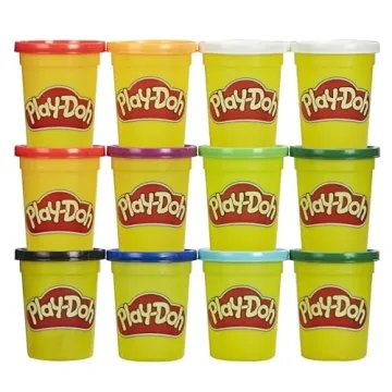 The Play-Doh collection includes 12 large cans, each packed with 4 ounces of colorful dough. The assortment of colors such as orange, purple, light green, blue, black, light blue, white, forest green, and red adds a wide range of creative possibilities. The cans are packed in simple, recyclable packaging, ensuring they remain fresh and frustration-free upon opening. This non-toxic, wheat-based Play-Doh is safe for young children and easy to clean up, even when stuck in carpet or small crevices.