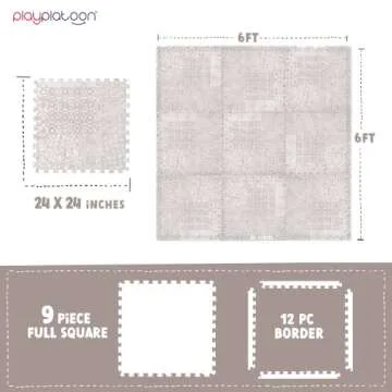 Play Platoon Non-Toxic Extra-Thick Childrens Foam Play Mats for Floor, 9 Tiles - 72 x 72 inch Comfortable Cushioned Foam Floor Puzzle Tiles for Kids & Toddlers with 24 x 24 inch Sets - Khaki