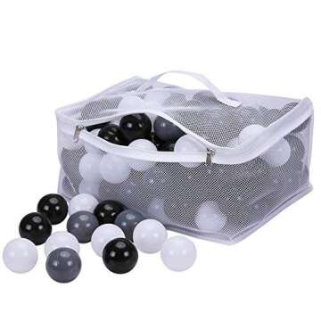 Introducing the PlayMaty 100 Pieces Colorful Pit Balls - a vibrant collection that combines fun, safety, and convenience, making it an essential accessory for playtime! Designed specifically for toddlers and kids, these ocean balls come in a gorgeous mix of black, white, and grey – colors that are not only trendy but also incredibly appealing for children of all ages. Each ball measures a moderate 2.16 inches in diameter, offering the perfect size for little hands to grasp...