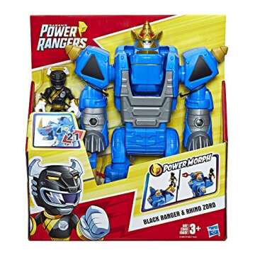 Show more Unleash the powers of imagination with the Playskool Heroes Power Rangers Morphin Zords Black Ranger and Rhino Zord! Tailored for younger fans aged 3 and up, this delightful 3-inch action figure set brings to life the dynamic duo from the beloved Power Rangers franchise. Your child can immerse themselves in thrilling adventures with the iconic series characters, offering a unique blend of play and learning. The Rhino Zord transforms effortlessly between two exciting modes, guaranteeing hours of entertainment and fostering creativity!
