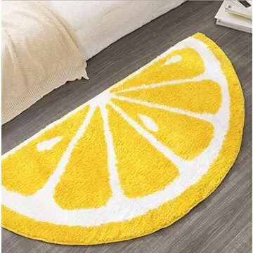 Show more Introducing your new favorite home accessory - the Playtime Cozy Lemon Cute Fruits Half Round Shaped Rug! Crafted with an eye-catching lemon design, this delightful rug will brighten your space while offering unmatched comfort underfoot. Made of high-quality microfiber, the rug features a super soft texture that ensures a cozy experience in any room. Not only does it trap dirt and moisture effectively, making it ideal for the bathroom or kitchen, but its environmental protection features further enhance its appeal. Say goodbye to dull floorings and hello to fresh, vibrant decor!