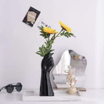 Plcnn Modern Ceramic Vase, Black Hand Shape Flower Vase 9 Inch Human Body Ceramic Vase Body Art Vase for Home Table Living Room Office Decor
