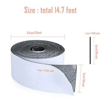 Show moreIntroducing the Pllieay Self Adhesive Felt Tape, a versatile solution designed to protect your furniture and hard surfaces while enhancing your home decor. Measuring 1.96 inches in width, 0.04 inches thick, and extending 14.7 feet in length, this black felt strip seamlessly blends with any color scheme, making it an ideal choice for a variety of settings. Whether you want to prevent scratching on your hardwood floors or avoid marring your decorative items, this tape does it all! Made from high-quality polyester felt, it offers excellent durability and flexibility, ensuring it fits perfectly in multiple applications.