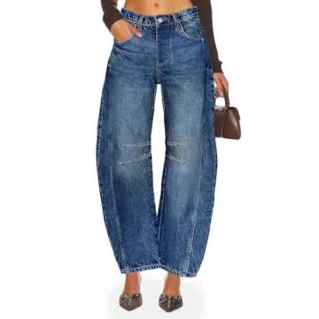 PLNOTME Women's Baggy Boyfriend Jeans Vintage Wide Leg Mid Rise Barrel Denim Ankle Pants