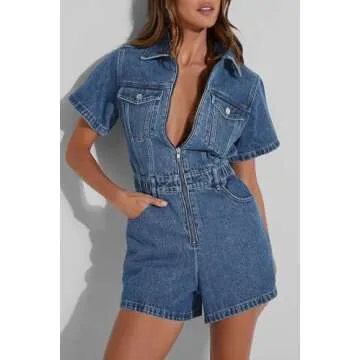 Show moreStep up your summer fashion game with the PLNOTME Women's Summer Denim Romper, the perfect blend of style, comfort, and versatility. This trendy and fashionable jumpsuit features a unique vintage distressed design that effortlessly brings a touch of retro vibes to your wardrobe. Whether you're heading out for a casual brunch with friends or a stylish evening event, this jean jumpsuit promises to make you stand out from the crowd. Made from high-quality denim, it ensures durability and comfort, letting you wear it all day without the worry of feeling restricted. With its zip-up closure, you can easily slip it on and off, giving it a practical edge that fashion-savvy women will surely appreciate.