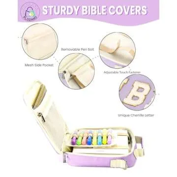 PLOZANO Bible Cover Case for Women, Large Chenille Letter Bible Bag with Shoulder Strap,Purple Bible Carrying Tote Bags for Bible Study Accessories, for Women Lady Teen Grils (Purple)
