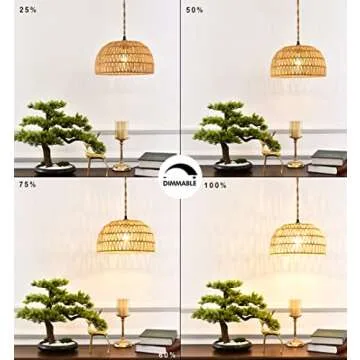 Plug in Pendant Light Rattan Hanging Lights with Plug in Cord Wicker Hanging Lamp with Woven Bamboo Basket Lamp Shade,Dimmable Switch,Boho Plug in Ceiling Light Fixtures for Kitchen,Farmhouse,Bedroom