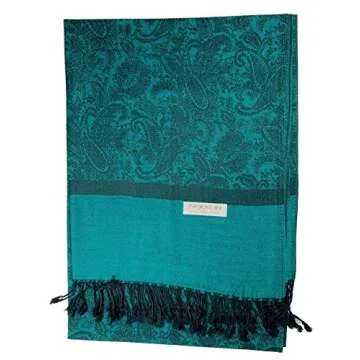 Plum Feathers Tapestry Ethnic Paisley Pattern Pashmina Scarf teal