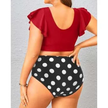 Plus Size Two Piece Bikini Swimsuits - High Waisted Tummy Control Women Bathing Suits with Ruffle Sleeve Swimwear Red Dot 20 Plus