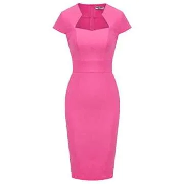 Flattering Fit: Cap Sleeve with unique design neckline, this below knee length dress exudes confidence and sophistication